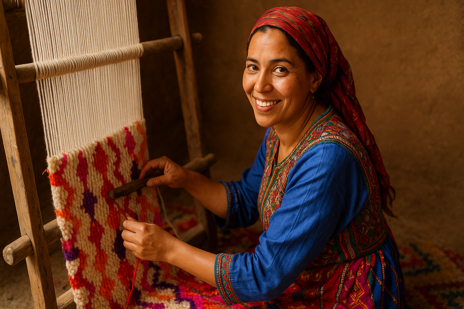 Préparation de la laine, teinture naturelle, montage du métier à tisser traditionnel, et le tissage minutieux qui donne naissance à ces œuvres intemporelles.